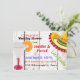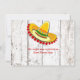 Fun couple's wedding shower invitation done in a rustic white washed wood look, with a colourful Mexican theme, and graphics of a cartoon sombrero, on the top and a margarita glass, on the bottom left. Multi-coloured text, on the front and back, is fully customisable and ready to personalise for your event.