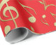 Festive Music Holiday Wrap With Gold Music Notes. Gold musical notes and clefs in a floral scrolling pattern on a nice holiday red. Perfect to wrap a gift for your favourite musician or music lover.