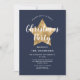 Personalised Festive Navy Blue Gold Star Christmas Party Invitation.