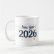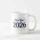 Celebrate the arrival of 2026 every morning with this festive New Year’s mug! The design features bold “2026” numbers in navy blue, decorated with a colourful pattern of stars in yellow, red, and light blue. Above, the words “New Year” appear in a stylish flowing script, surrounded by vibrant red and yellow fireworks bursts. Confetti dots and stars scatter across the white background, giving the design a fun and celebratory atmosphere. Perfect for sipping coffee, tea, or hot cocoa while ringing in the new year—or as a gift for friends and family to start 2026 with joy!