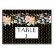 Black and gold background with floral band creates a festive but elegant look. Customise with Table info on front and back of card
