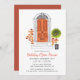 This holidays design features a watercolor sketch of a front door with a topiary out the front. Your custom event type (shown with "Holiday Open House") in chic orange calligraphy script lettering. Personalised with your Christmas party details by editing the text boxes provided.