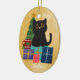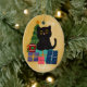 Festive Orange Merry Christmas Black Cat Coffee Ceramic Ornament