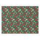 Christmas ornaments and flowers in a festive holiday pattern with green, red, and cream colours