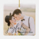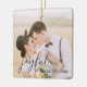 Festive Our First Christmas Engaged Ceramic Ornament. Personalise with your custom photo and year. A perfect gift for yourself, family and friends this Christmas holiday season.