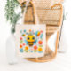A cheerful tote bag featuring a cartoon bee with a party hat and balloon, surrounded by colorful flowers and confetti. Perfect for birthdays, kids’ parties, or anyone who loves playful and vibrant designs.