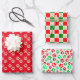 This adorable wrapping paper set for pet lovers features three different paw print pattern designs in classic holiday colours of red, green, white and faux gold. Makes an excellent Christmas gift wrap for your pets!