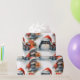 Colourful Christmas wrapping paper showcases adorable penguins in Santa hats surrounded by vibrant gifts and festive greenery. Perfect for adding joy to holiday presents.