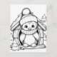 Festive penguin kids colouring postcard