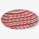 Add stylish flair to your holiday party with paper plates featuring a festive peppermint stripe pattern of red and white lines in varying widths.