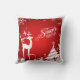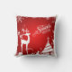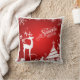 This festive Season's Greetings Christmas holiday pillow has a white reindeer and wrapped gift on a red and white snowflakes background with a white Christmas or Holiday tree and assorted presents under the tress. If you need any matching items, or if you need assistance or changes, please email niteowlstudio@gmail.com.