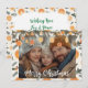 Pretty Christmas card with a family photo, orange slices and pine branches. Pretty orange and green country feeling holiday card. Upload picture in the personalise area.
