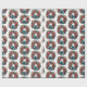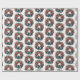 Wrapping paper with a pretty Christmas wreath. A festive image with a pine wreath decorated with red flowers, holly and a lovely blue bow. Delightful.