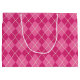 A bright pink argyle pattern decorates this festive gift bag. This bag is great for a Christmas party, women, girls, teens, a birthday, the holidays, Christmas, etc...The design is from original art.