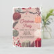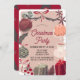 This cute and festive Christmas holiday dinner party invitation features a dusty pink background framed by a turkey, pinecones, cake, tea, ornaments, spices, ornament, and gifts. The reverse side features a burgundy red background with tree patterns. Personalise it for your needs. You can find matching products at my store.
