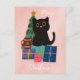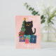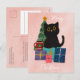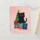 Festive Pink Merry Christmas Cute Black Cat Coffee Holiday Postcard