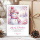 Celebrate the season with this cute watercolor pink coquette snowman kids Christmas card, set in a magical snowy forest. Editable text lets you personalize instantly, and the digital download provides an easy, fast, and festive holiday greeting.