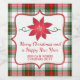 Festive full size Christmas wine label done in the red, green and white Stewart King George Tartan Plaid pattern. A red and white polka dot framed decorative white text area, in the middle of the label, has a pretty poinsettia done in a foil look. Personalise the red text for your holiday party or gift giving needs.