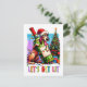 Wrapped in colorful lights and holiday cheer, this playful dog embraces the season with a wine bottle and a wink. A decorated tree, scattered ornaments, and bold “Let’s Get Lit” text make this scene a merry celebration of holiday fun.