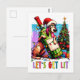 Festive Pup Hugging Wine Bottle Under Christmas Lights Postcard