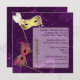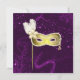 Elegant Masquerade Ball / Carnival party invitation done in a rich purple, with graphics of swirls and sparkle like designs, on the background. Graphics of two ornate face masks decorate the left side of the invitation and gold tone graphic text reading Masquerade is placed on the left side of the text area. Text in dark purple is fully customisable for you to personalise for your event. Great for Masquerade Parties, Halloween, Carnival, and Mardi Gras.