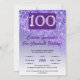 Festive Purple Glitter 100th Birthday is a shimmering invitation card for her.
