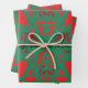 Festive Red and Green Pattern Wrapping Paper Sheet