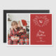 Spread Christmas cheer with this elegant and modern magnetic greeting card featuring a white line art mistletoe design framing a classic crest easily customisable with your initials over a festive red background. Add one of your favourite family portraits to the left side of this magnet for a unique keepsake
