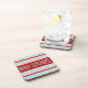 Festive Red Aqua Pattern "Merry Christmas" Coaster