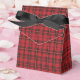 A classic and festive red and black plaid favour box with a stylish black ribbon.