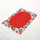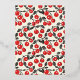 This wedding invitation features a playful yet elegant design with a central oval filled with text, surrounded by a border of bright red cherries and black leaves on a cream background. The color palette includes deep red, black, and cream, creating a festive and inviting mood. The clean lines and flat colors give it a modern graphic look, while the serif typography adds sophistication. Perfect for couples looking to celebrate their special day with a touch of whimsy and charm.