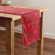 Festive red Christmas table cloth runner, with a pattern of golden snowflakes and green stylised Christmas trees. Lovely addition to any table for the holidays. Customise to add your own text.