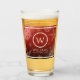 Add a festive touch to year-end and Christmas celebrations with this elegant pint glass, which features snowflakes falling on a faux metallic red foil / ombre / moire background. Add initial / monogram (or logo), name, year, or custom text as desired. Reverse shows identical design.
