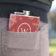 The flask itself is fine. It’s a cheap flask, obviously bought in bulk, however am prepared to overlook that. Given that it is a personalized item, I would have liked to have seen gift boxing instead of the generic packaging. Terrible printing, and/or quality. It’s a cheap, tacky vinyl. It is not cut straight and is also applied in a way that it is overhanging the bottom, causing the glue to catch on items and it will eventually roll and tear, damaging the wrap.