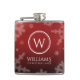 Festive Red Foil Snowflakes Monogram Name Hip Flask