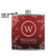 Add a festive touch to year-end and Christmas celebrations with this elegant flask, which features snowflakes falling on a faux metallic red foil / ombre / moire background. Add initial / monogram (or logo), name, year, or custom text as desired.