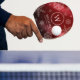 Add a festive touch to year-end and Christmas celebrations with this elegant table tennis paddle, which features snowflakes falling on a faux metallic red foil / ombre / moire background. Add initial / monogram (or logo), name, year, or custom text as desired.