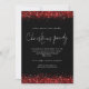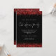Festive Red Glitter Script Christmas Party on Black. Classy style for your Holiday party with red faux glitter bordering the top and bottom edges on both sides and in a set handwriting style script for the occasion typography. Easily personalise the rest of the text to your own details.