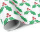 Festive Red Green Holly Leaves Berries Holiday Wrapping Paper