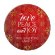 Add Christmas to the kitchen with this commemorative glass cutting board, which features the words "love, peace, and joy" in serif and script lettering surrounded by twinkling orange snowflakes on a warm red gradient background. Personalise with the family name and/or text of your choice.