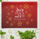 Festive Red Love, Peace, and Joy with Snowflakes Tea Towel