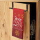 Add a touch of Christmas to the kitchen with this festive hand towel, which features the words "love, peace, and joy" in serif and script lettering surrounded by twinkling orange snowflakes on a warm red gradient background. Personalise with the family name and/or text of your choice.