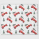 Festive Red Retro Car & Christmas Tree Pattern Wrapping Paper