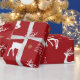 Festive Red Rustic Reindeer Christmas Tree Holiday Wrapping Paper