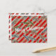 Festive Red Stripe Pine Spruce Cones Kraft Holiday Postcard