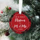 This holiday photo ornament features a festive red tartan pattern and text that says "Our first Christmas as Mr. & Mrs." with the year. The reverse side accommodates a one photo. A wonderful gift for any newlyweds!