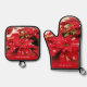 Festive Red White Floral Poinsettias Christmas Oven Mitt & Pot Holder Set