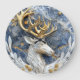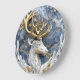 A beautifully crafted clock features a majestic deer with golden antlers set against a stunning blue marble background.