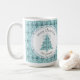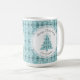 Festive Royal Botanical Robin's Egg Blue Tree Classic Coffee Mug features a Forever Endeavor original print. It displays a Christmas tree with a unique floral motif in a beautiful blue tone and bow. Customize text. Bundle this coffee mug with matching items from this collection like gift tags and wrapping paper.