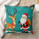 Delightful illustration of Santa with reindeer surrounded by holiday decorations, snowflakes, and vibrant colours celebrating the festive spirit of Christmas and seasonal joy in a magical winter setting.